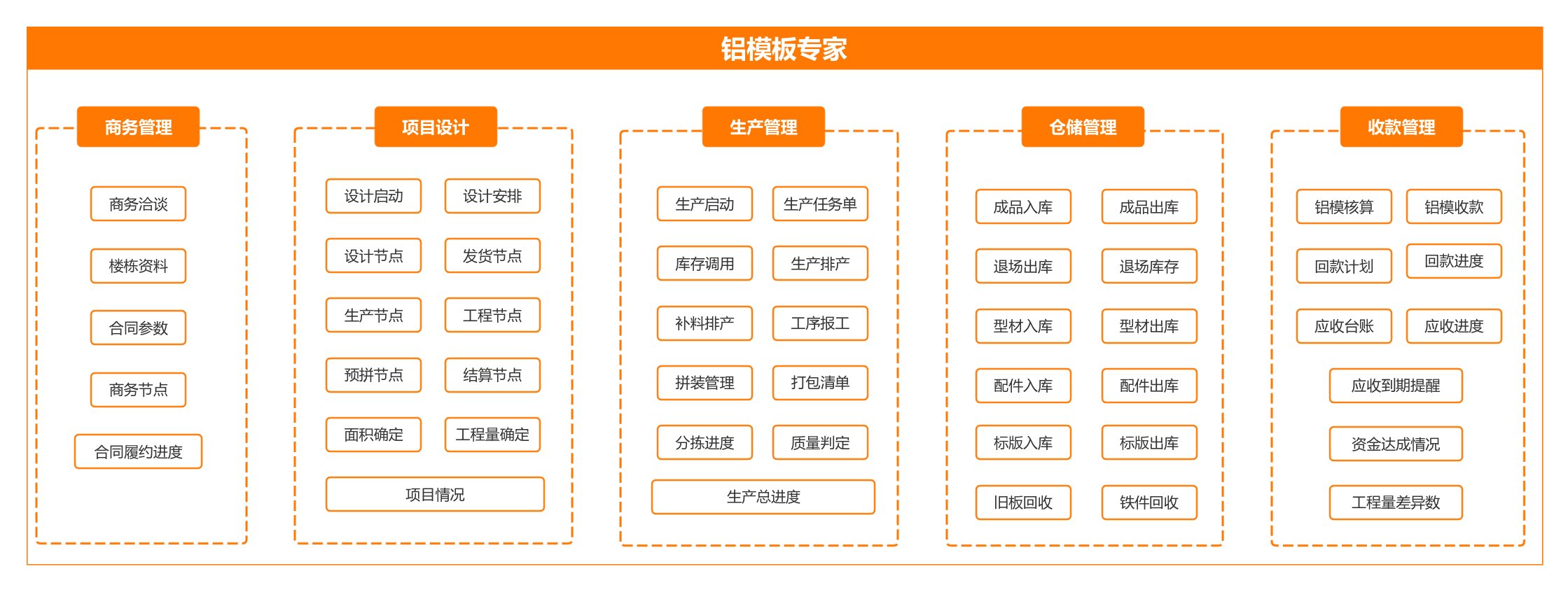 鋁模板專家是一款專為鋁模板生產(chǎn)和租賃企業(yè)打造的集成化管理軟件。該軟件通過商務管理、項目設計、生產(chǎn)管理、倉儲管理、收款管理、數(shù)據(jù)分析與決策支持、協(xié)同辦公與團隊溝通以及用戶權限管理與系統(tǒng)安全等功能,實現(xiàn)了對鋁模板生產(chǎn)和租賃業(yè)務的全面、高效、精準管理,為鋁模板專家提供一站式業(yè)務解決方案。 鋁模板專家旨在幫助企業(yè)降低運營成本、提高生產(chǎn)效率、優(yōu)化資源配置,進而提升企業(yè)的市場競爭力和客戶滿意度。